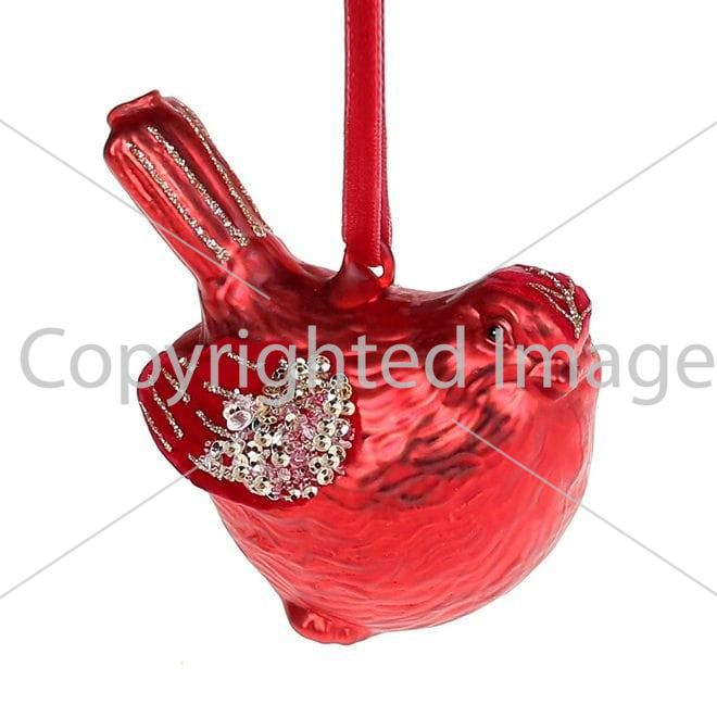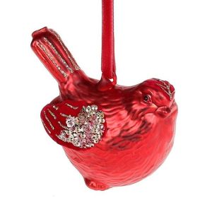Набор стеклянных новогодних подвесок Птичка, 10 см, цвет – красный.