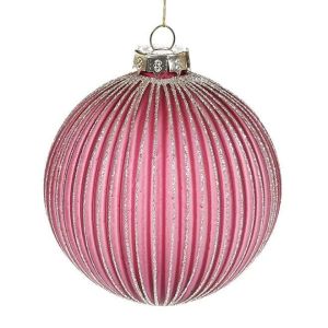 Набор стеклянных шариков с рельефом и декором из глитера, 10 см, цвет - божоле.