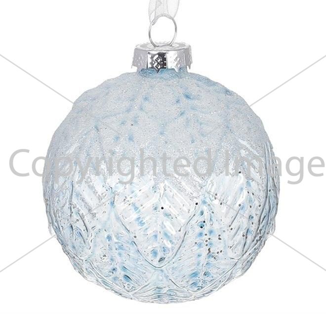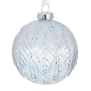 Набор стеклянных шариков рельефной формы с декором из глитера 10 см, цвет голубой.
