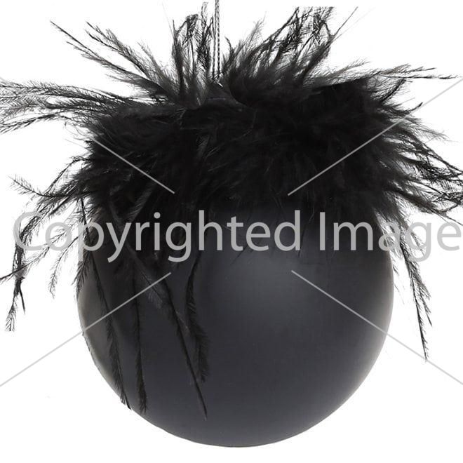 Набор стеклянных шариков с матовым покрытием и декором из перьев, 10 см, цвет - черный.