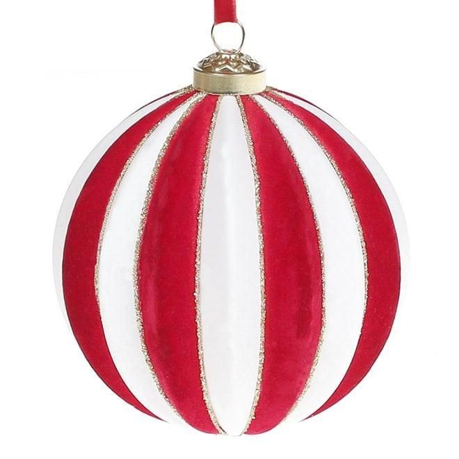 Набор стеклянных шариков с бархатным покрытием, 10 см. цвет – красный с белым.