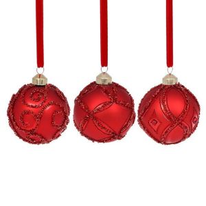 Набор стеклянных шариков 8 см. Роскошный красный, микс 3 дизайна.
