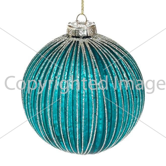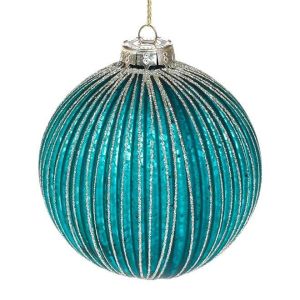 Набор стеклянных шариков с рельефом и декором из глитера, 8 см, цвет – темная бирюза.