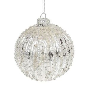Набор стеклянных шариков с декором из бисера, 8 см, цвет - серебряный.
