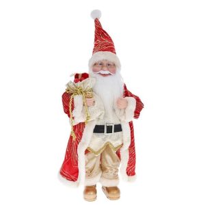 Новогодняя декоративная игрушка Санта, 45 см, цвет – красный с золотом. Материал – пластик, ткань.