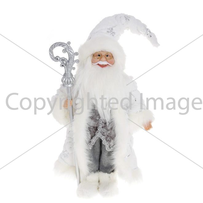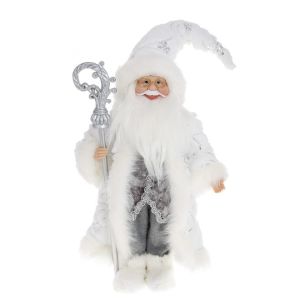 Новогодняя декоративная игрушка Санта, 45 см, цвет – белый с серым. Материал – пластик, ткань.