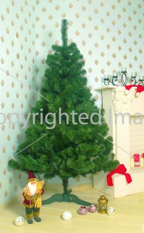 Представленная модель высотой 1,3 метра выполнена из ПВХ зелёного цвета, длина иголочек составляет 4 см. Она имеет конусную форму с нижним диаметром 77 см и достаточное количество пышных веток, на которые свободно помещаются новогодние игрушки.