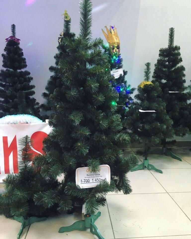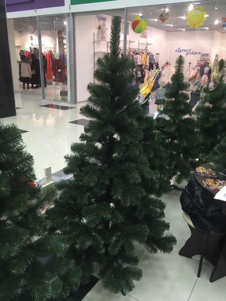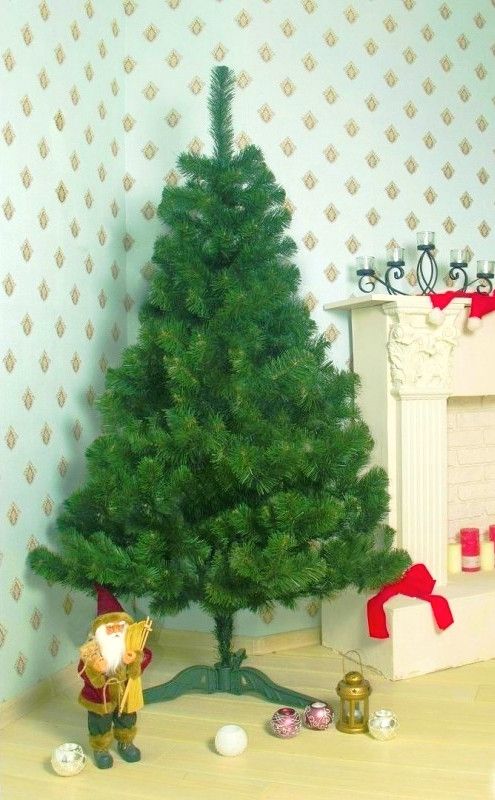 Представленная модель высотой 2,5 м выполнена из ПВХ зелёного цвета, длина иголочек составляет 4 см. Она имеет конусную форму с нижним диаметром 120 см и достаточное количество пышных веток, на которые свободно помещаются новогодние игрушки.