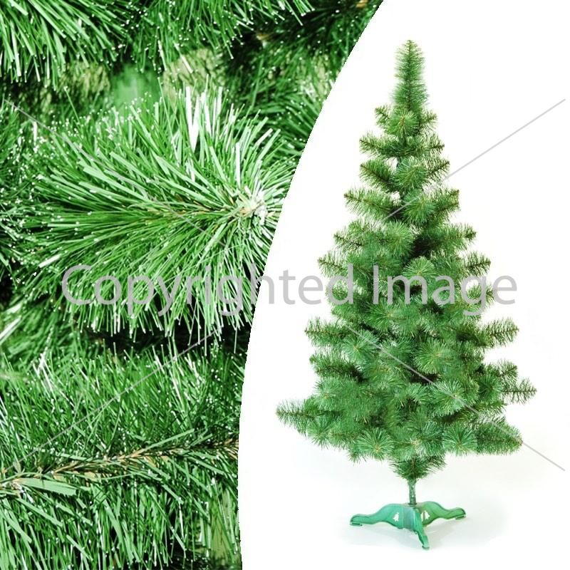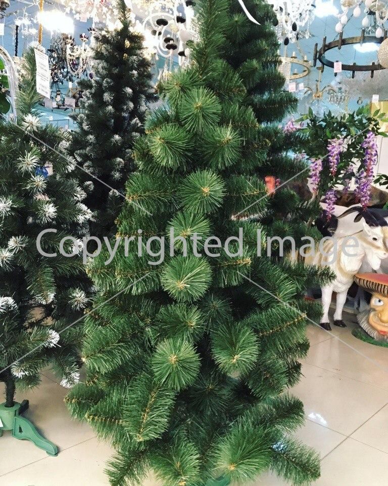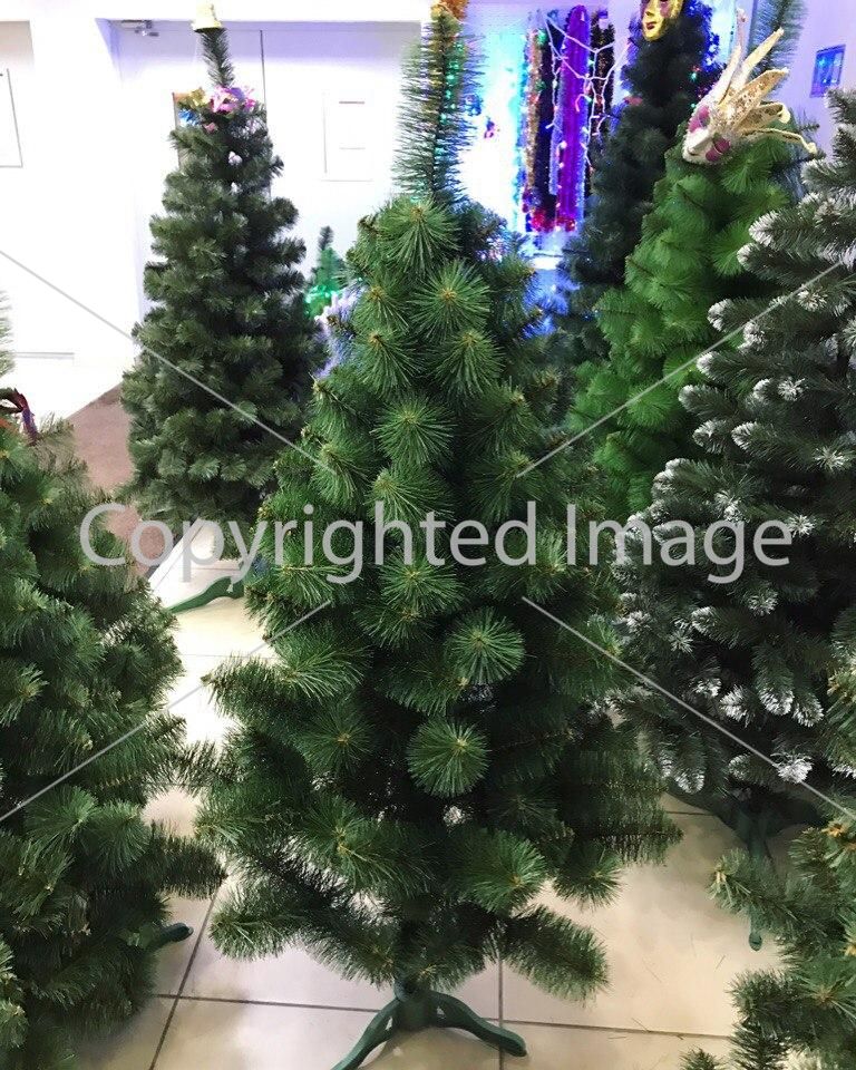 Представленная модель высотой 1 метр выполнена из ПВХ зелёного цвета с белыми кончиками, длина иголочек составляет 5 см. Она имеет конусную форму с нижним диаметром 92 см и достаточное количество пышных веток, на которые свободно помещаются новогодние игрушки.