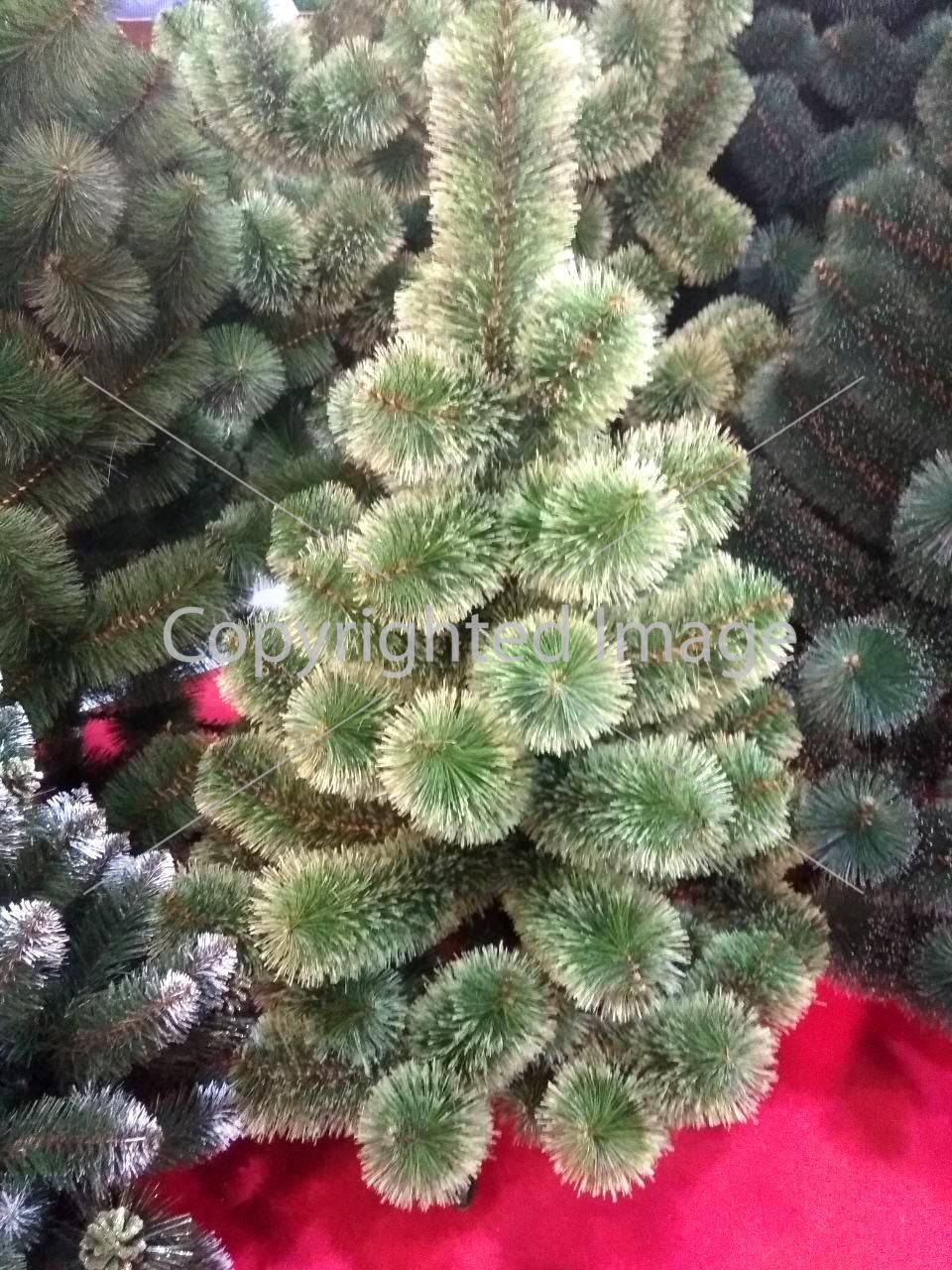 Представленная модель высотой 1,5 метра выполнена из ПВХ зелёного цвета, длина иголочек составляет 6 см с распушенными кончиками. Она имеет конусную форму с нижним диаметром 92 см и достаточное количество пышных веток, на которые свободно помещаются новогодние игрушки.