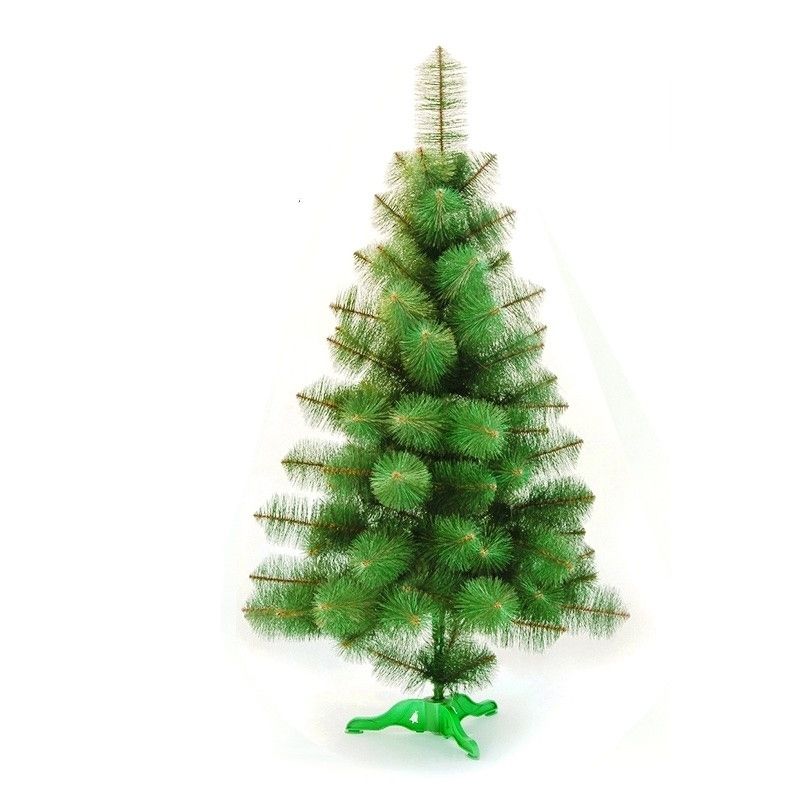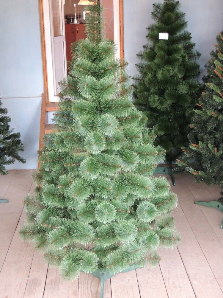 Представленная модель высотой 2,5 метра выполнена из ПВХ зелёного цвета, длина иголочек составляет 6 см с распушенными кончиками. Она имеет конусную форму с нижним диаметром 152 см и достаточное количество пышных веток, на которые свободно помещаются новогодние игрушки.