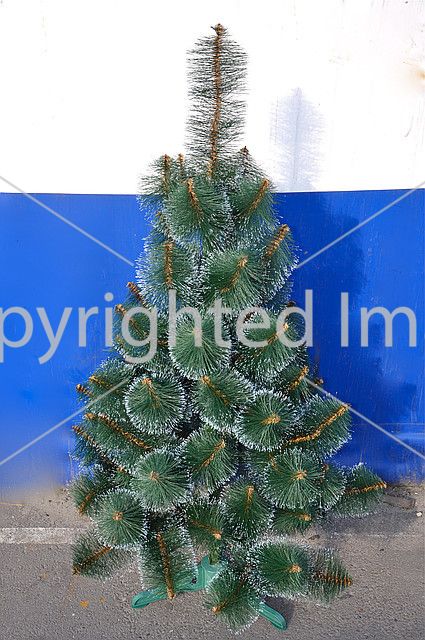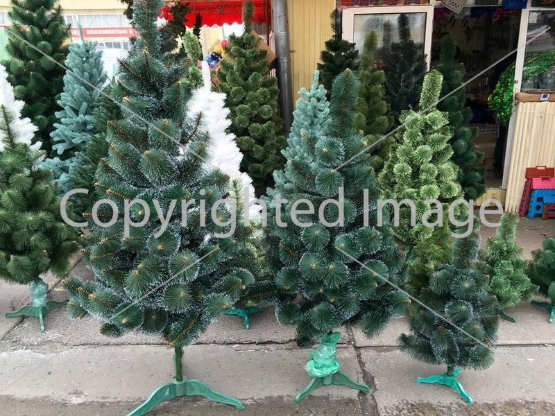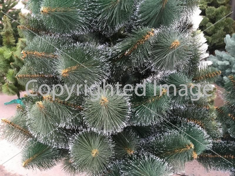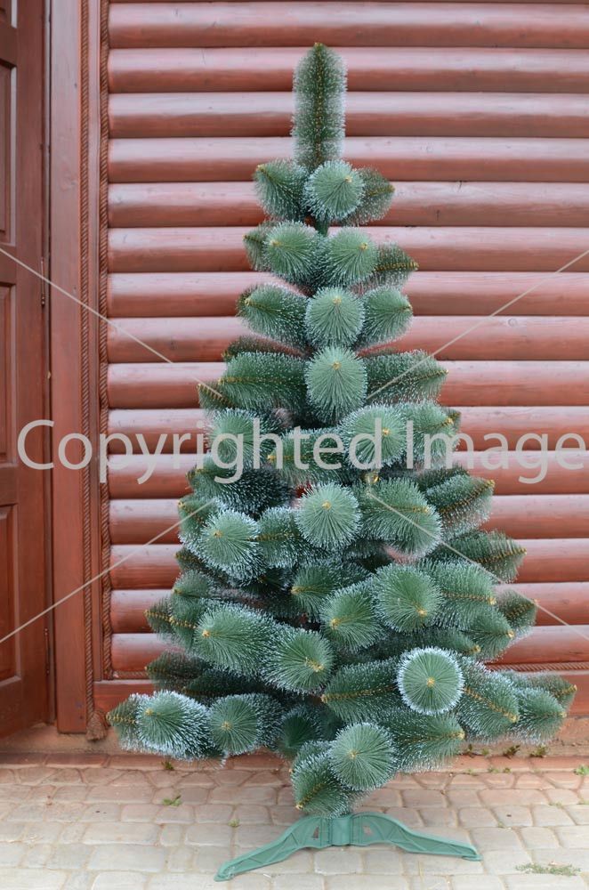 Представленная модель высотой 1 метр выполнена из ПВХ тёмно-зелёного цвета, длина иголочек составляет 6 см с заснеженными кончиками. Она имеет конусную форму с нижним диаметром 82 см и достаточное количество пышных веток, на которые свободно помещаются новогодние игрушки.