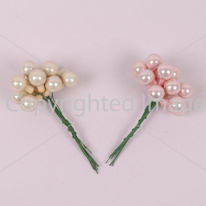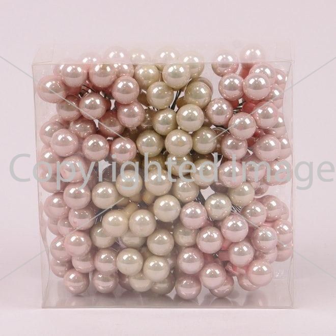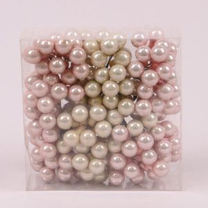 Шарики стеклянные 1,5 см. розово-кремовые (12 пучков-144 шарика)