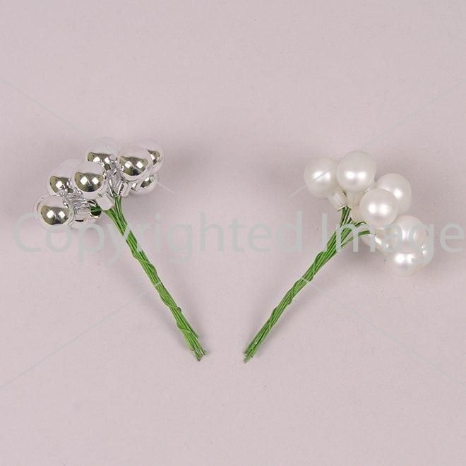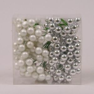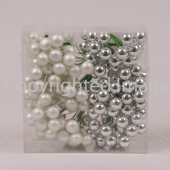 Стеклянные шарики серебряного цвета на проволоке образуют небольшой пучок, в нем соединились 12 стеклянных шариков. В упаковке два вида пучков 6 с матовыми шариками и 6 с глянцевыми. Такие маленькие стеклянные шарики обязательно пригодятся флористам и декораторам, собрав их в пучок и дополнив ветвями хвои, бусами, лентами или другим декором, они создадут уникальные новогодние украшения!