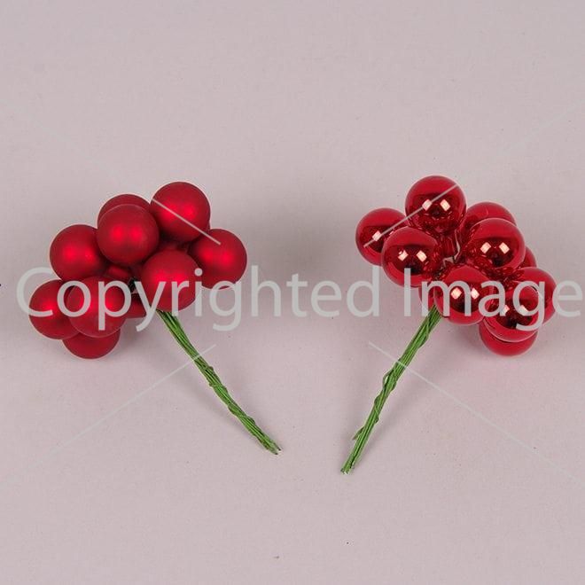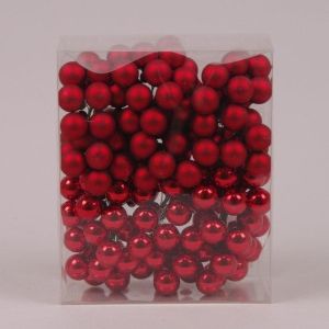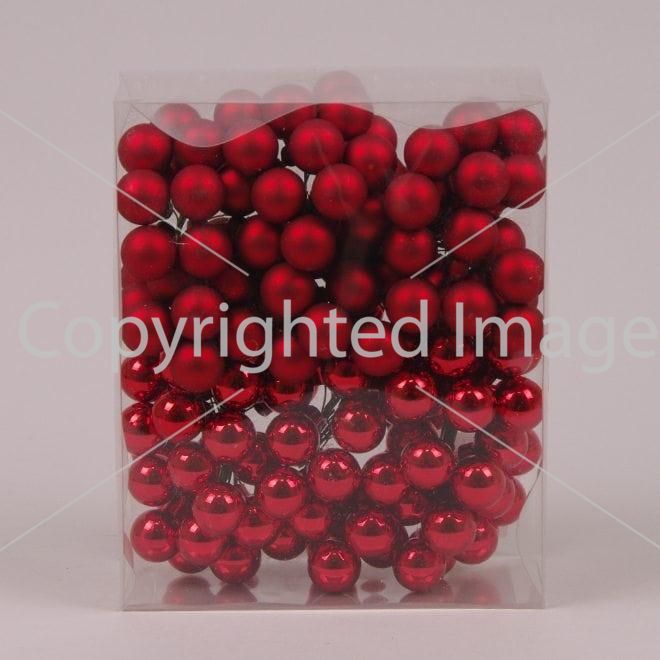 Стеклянные шарики красного цвета на проволоке образуют небольшой пучок, в нем соединились 12 стеклянных шариков. В упаковке два вида пучков 6 с матовыми шариками и 6 с глянцевыми. Такие маленькие стеклянные шарики обязательно пригодятся флористам и декораторам, собрав их в пучок и дополнив ветвями хвои, бусами, лентами или другим декором, они создадут уникальные новогодние украшения!