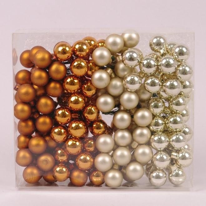 Стеклянные шарики коричневого-шампанья цвета на проволоке образуют небольшой пучок, в нем соединились 12 стеклянных шариков. В упаковке четыре вида пучков. Такие маленькие стеклянные шарики обязательно пригодятся флористам и декораторам, собрав их в пучок и дополнив ветвями хвои, бусами, лентами или другим декором, они создадут уникальные новогодние украшения!