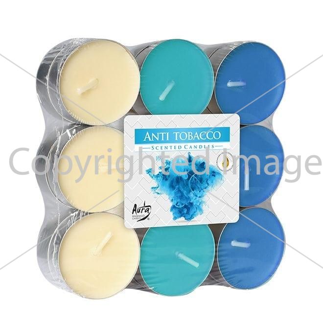Свеча чайная таблетка ароматическая Bispol микс Антитабак D-3,9 см. 18 шт