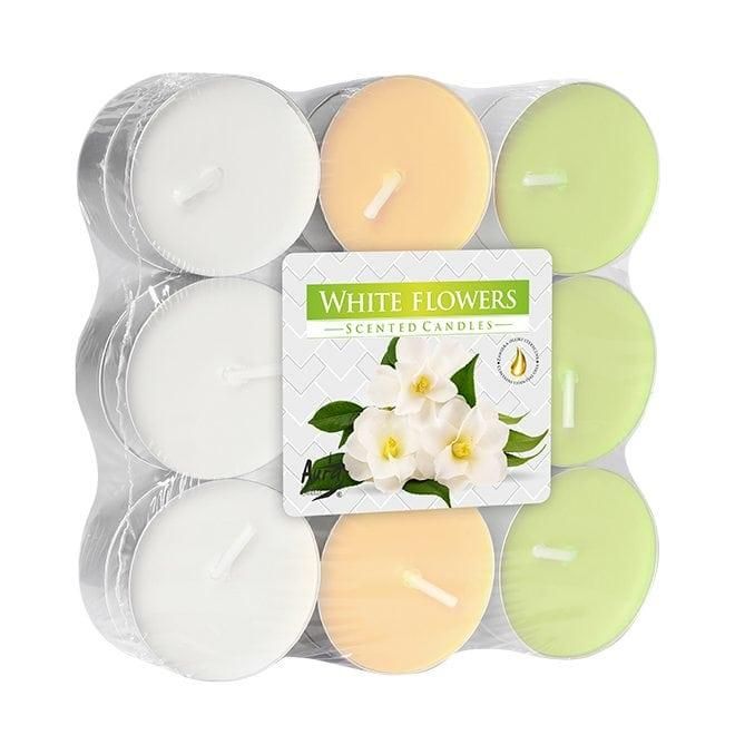 Свеча чайная таблетка ароматическая Bispol микс Белые цветы D-3,9 см. 18 шт.
