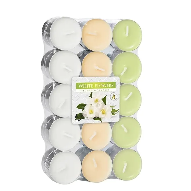 Свеча чайная таблетка ароматическая Bispol микс Белые цветы D-3,9 см. 30 шт. 27723