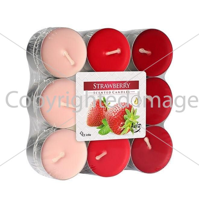 Свеча чайная таблетка ароматическая Bispol микс Клубника D-3,9 см. 18 шт.