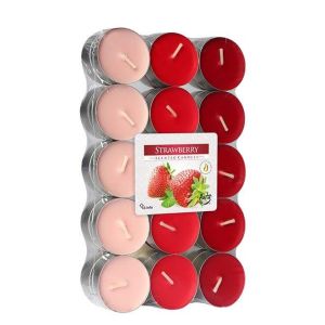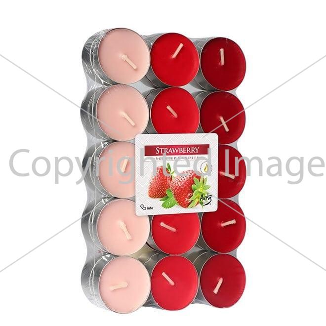 Свеча чайная таблетка ароматическая Bispol микс Клубника D-3,9 см. 30 шт