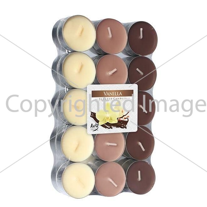 Свеча чайная таблетка ароматическая Bispol микс Ваниль D-3,9 см. 30 шт