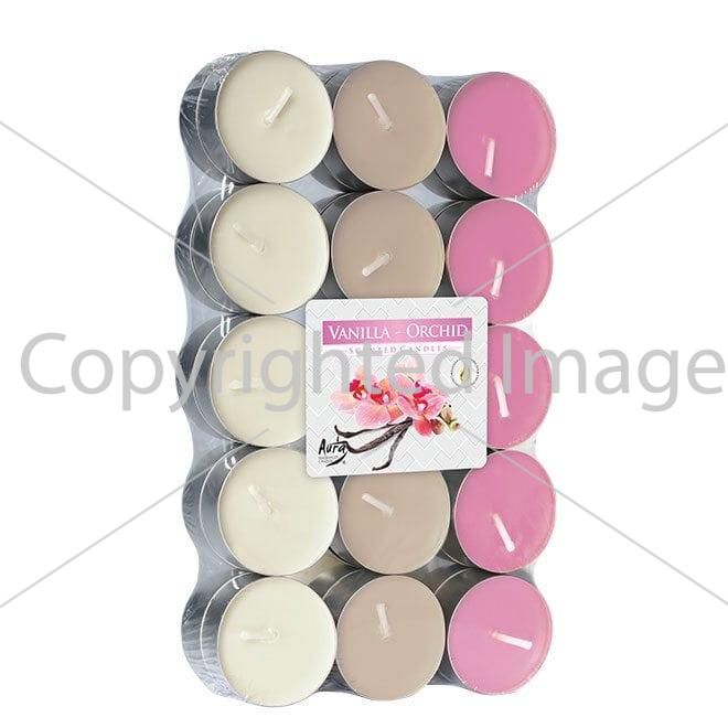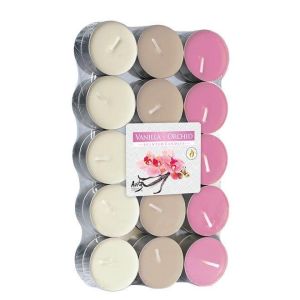 Свеча чайная таблетка ароматическая Bispol микс Ваниль-Орхидея D-3,9 см. 30 шт