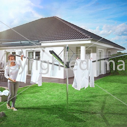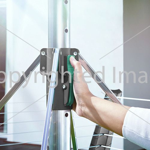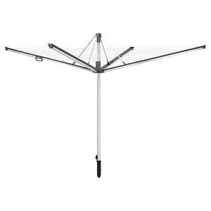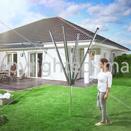 КРАТКИЕ ХАРАКТЕРИСТИКИ Материал: алюминий Общая длина струн: 50 метров До пяти загрузок стиральной машины Длина крайней струны 2,03 м Диагональ: 3,28 м Складывание одной кнопкой При складывании струны прячутся внутрь сушки Восемь держателей для вешалок Десять уровней регулировки высоты (106 - 172 см)