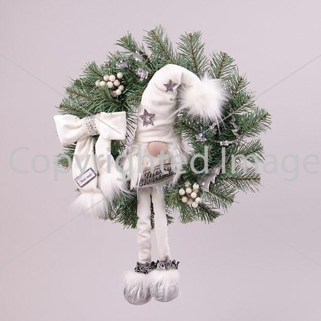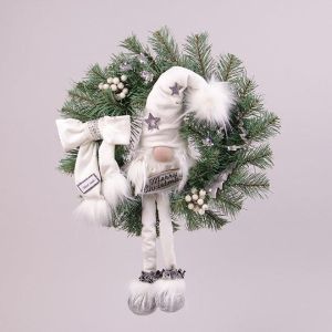 Венок новогодний с гномом в белой шапке 40 см. 16482