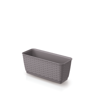 Балконний ящик Ratolla P – виготовлений з якісного пластику, стійкий до дії сонячних променів та вологи. Він легкий та стійкий, має модний дизайн та прикрасу у спокійних тонах. Фактура ротанга надає горщику вигляду натурального виробу, приносить атмосферу тепла і тишу. Він підійде для декорування тераси, балкону, кафе чи квартири.