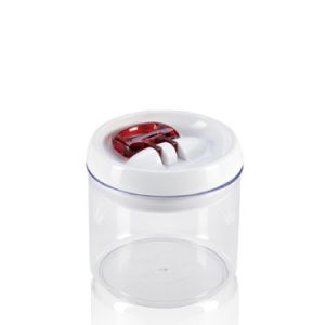 КОРОТКІ ХАРАКТЕРИСТИКИ Матеріал: пластик Об'єм: 900 мл Діаметр: 12,7 см Висота: 13 см Вакуумна кришка з легким відкриттям одним пальцем