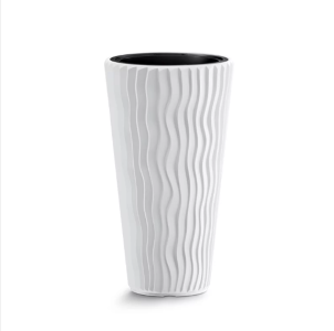 Квітковий горщик Sandy Slim із вкладом - виготовлений з якісного пластику, стійкого до дії сонячних променів та вологи. Він легкий і стійкий, має модний дизайн та гарне забарвлення. Елегантний рифлений візерунок і приємний глянсовий блиск надають особливого шарму та ошатності. Горщик підійде для декорування тераси, балкону, кафе чи квартири. Внутрішній внесок зробить посадку рослини та догляд за нею легше та зручніше.