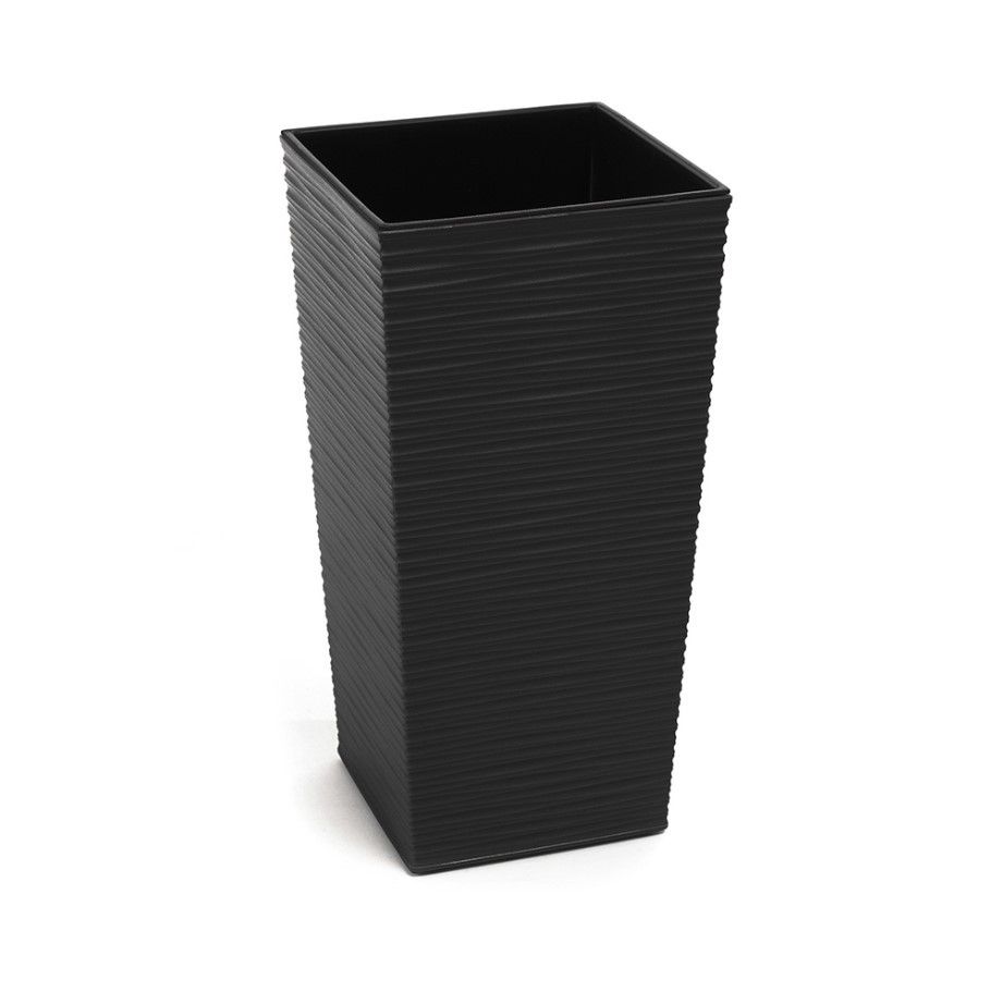 Горщик FINEZJA DLUTO – має сучасний дизайн та універсальне застосування. Він ідеально підходить для оформлення балконів, терас та внутрішніх приміщень. Горщик стійкий до ультрафіолетових променів і має оригінальну поверхню, що імітує різьблення долотом по дереву. Він складається з двох елементів – декоративного корпусу та чорного вкладу.