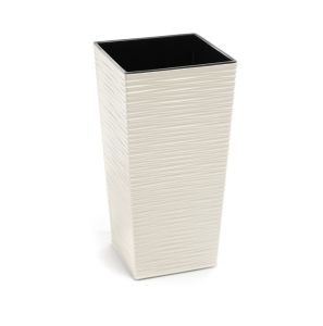 Горщик FINEZJA DLUTO – має сучасний дизайн та універсальне застосування. Він ідеально підходить для оформлення балконів, терас та внутрішніх приміщень. Горщик стійкий до ультрафіолетових променів і має оригінальну поверхню, що імітує різьблення долотом по дереву. Він складається з двох елементів – декоративного корпусу та чорного вкладу.