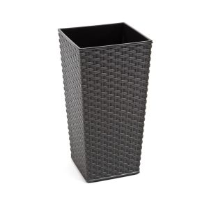 Горщик із вкладом FINEZJA RATTAN – має сучасний дизайн та універсальне застосування. Він ідеально підходить для оформлення балконів, терас та внутрішніх приміщень. Горщик стійкий до ультрафіолетових променів та має оригінальну поверхню, що імітує плетіння раттана. Він складається із двох елементів – декоративного корпусу та чорного вкладу, який може легко вийматися.
