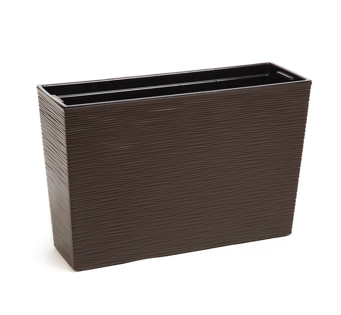 Горщик WERBENA Dluto - має сучасний дизайн і універсальне застосування. Він ідеально підходить для оформлення балконів, терас та внутрішніх приміщень. Горщик стійкий до ультрафіолетових променів та має оригінальну поверхню, дизайн горщика імітує різьблення по дереву долотом. Він складається із двох елементів – декоративного корпусу та чорного вкладу, який може легко вийматися. Об'єм вкладу (л) 14.5