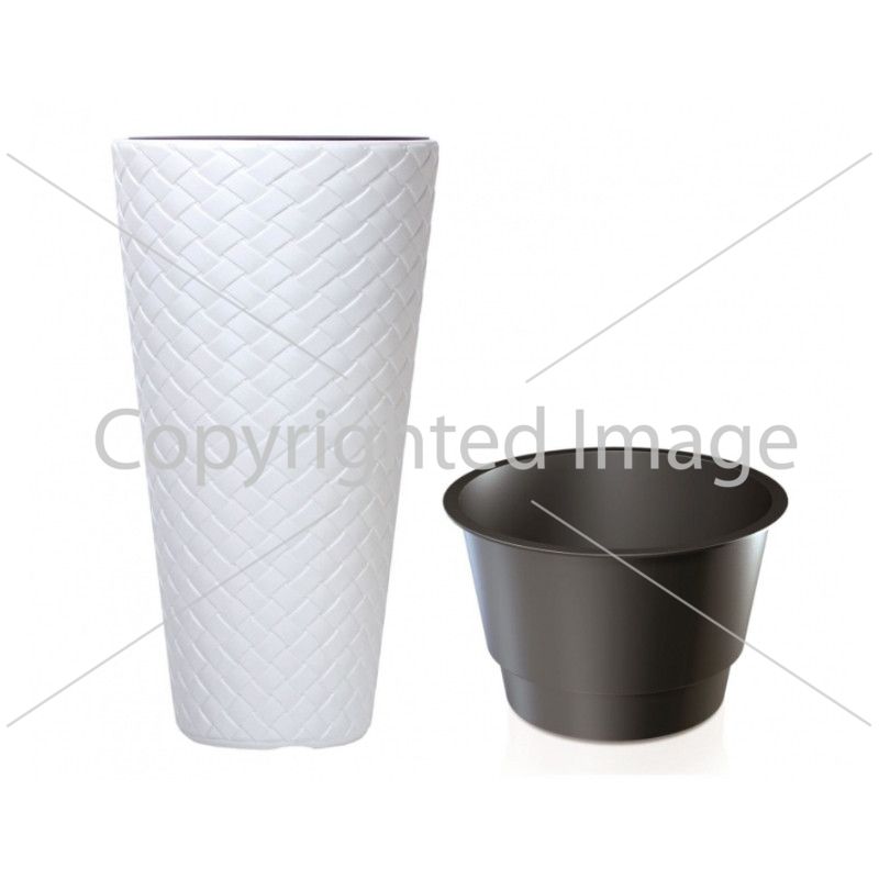 Квітковий горщик із вкладом Matuba Slim високий - виготовлений з якісного пластику, стійкого до дії сонячних променів та вологи. Він легкий і стійкий, має модний дизайн та гарне забарвлення. Горщик підійде для декорування тераси, балкону, кафе чи квартири. Внутрішній внесок зробить посадку рослини та догляд за нею легше та зручніше.
