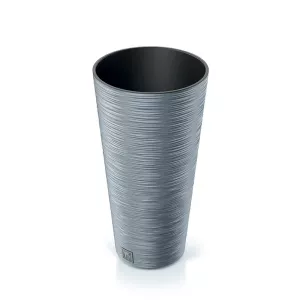 Квітковий горщик FURU SLIM із вкладом - виготовлений з якісного пластику, стійкого до дії сонячних променів та вологи. Він легкий і стійкий, має модний дизайн та забарвлення у спокійних тонах. Він підійде для декорування тераси, балкону, кафе чи квартири. Внутрішній внесок зробить посадку рослини та догляд за нею легше та зручніше.
