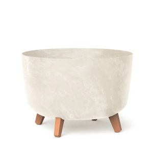 Пластиковий горщик GRACIA LOW BETON EFFECT на ніжках - ідеальний горщик для посадки квітів, рослин та трав. Ніжки виготовлені з матеріалу ECO, що імітує дерево. Горщик стійкий до УФ-випромінювання.