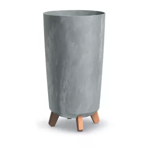 Пластиковий горщик GRACIA TUBUS SLIM BETON EFFECT на ніжках - ідеальний горщик для посадки квітів, рослин та трав. Ніжки виготовлені з матеріалу ECO, що імітує дерево. Горщик стійкий до УФ-випромінювання.