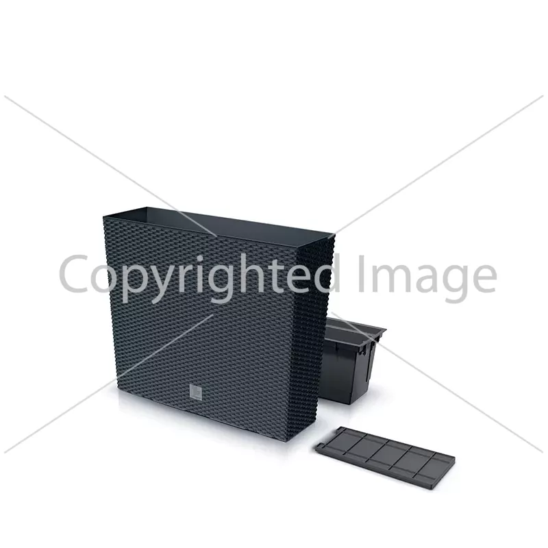 Квітковий горщик із вкладом RATO CASE TOWER високий - виготовлений із якісного пластику, стійкого до дії сонячних променів та вологи. Він легкий і стійкий, має модний дизайн та забарвлення у спокійних тонах. Фактура ротанга надає горщику вигляду натурального виробу, приносить атмосферу тепла та затишку. Він підійде для декорування тераси, балкону, кафе чи квартири. Внутрішній внесок зробить посадку рослини та догляд за нею легше та зручніше.