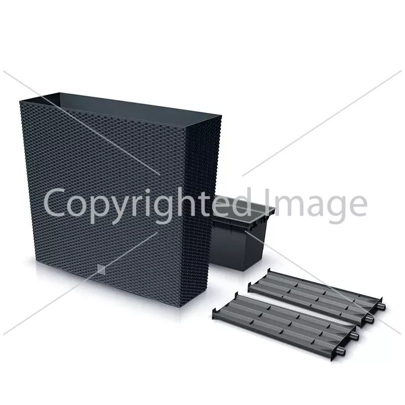 Квітковий горщик із вкладом RATO CASE TOWER високий - виготовлений із якісного пластику, стійкого до дії сонячних променів та вологи. Він легкий і стійкий, має модний дизайн та забарвлення у спокійних тонах. Фактура ротанга надає горщику вигляду натурального виробу, приносить атмосферу тепла та затишку. Він підійде для декорування тераси, балкону, кафе чи квартири. Внутрішній внесок зробить посадку рослини та догляд за нею легше та зручніше.