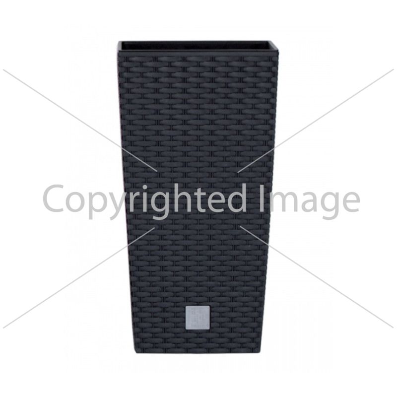 Горщик для квітів Rato Square з вкладом - виготовлений з якісного пластику, стійкого до впливу сонячних променів і вологи. Він легкий і стійкий, має модний дизайн та забарвлення у спокійних тонах. Фактура ротанга надає горщику вигляду натурального виробу, приносить атмосферу тепла та затишку. Він підійде для декорування тераси, балкону, кафе чи квартири. Внутрішній внесок зробить посадку рослини та догляд за ним легше та зручніше.