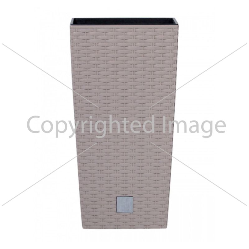 Горщик для квітів Rato Square з вкладом - виготовлений з якісного пластику, стійкого до впливу сонячних променів і вологи. Він легкий і стійкий, має модний дизайн та забарвлення у спокійних тонах. Фактура ротанга надає горщику вигляду натурального виробу, приносить атмосферу тепла та затишку. Він підійде для декорування тераси, балкону, кафе чи квартири. Внутрішній внесок зробить посадку рослини та догляд за ним легше та зручніше.