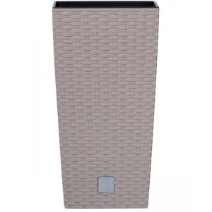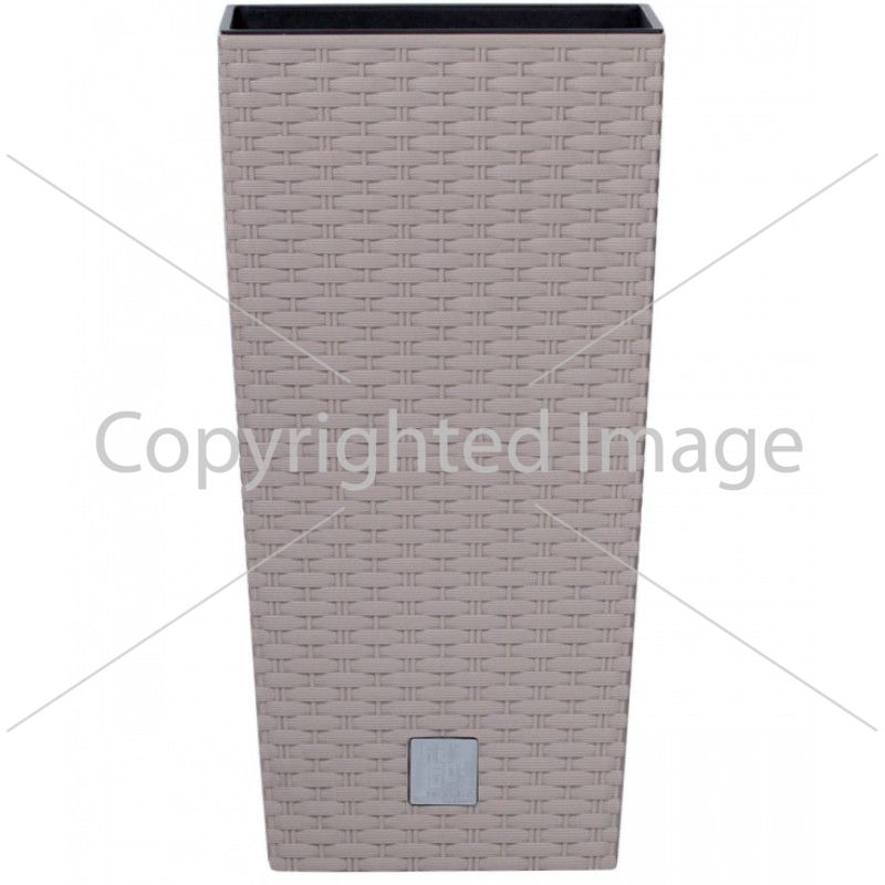 Горщик для квітів Rato Square з вкладом - виготовлений з якісного пластику, стійкого до впливу сонячних променів і вологи. Він легкий і стійкий, має модний дизайн та забарвлення у спокійних тонах. Фактура ротанга надає горщику вигляду натурального виробу, приносить атмосферу тепла та затишку. Він підійде для декорування тераси, балкону, кафе чи квартири. Внутрішній внесок зробить посадку рослини та догляд за ним легше та зручніше.