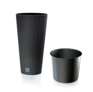 Горщик для квітів Rato Tubus з вкладом - виготовлений з якісного пластику, стійкого до впливу сонячних променів і вологи. Він легкий і стійкий, має модний дизайн та забарвлення у спокійних тонах. Фактура ротанга надає горщику вигляду натурального виробу, приносить атмосферу тепла та затишку. Він підійде для декорування тераси, балкону, кафе чи квартири. Внутрішній внесок зробить посадку рослини та догляд за нею легше та зручніше.