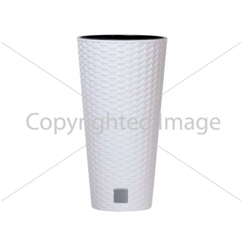 Горщик для квітів Rato Tubus з вкладом - виготовлений з якісного пластику, стійкого до впливу сонячних променів і вологи. Він легкий та стійкий, має модний дизайн та забарвлення у спокійних тонах. Фактура ротанга надає горщику вигляду натурального виробу, приносить атмосферу тепла та затишку. Він підійде для декорування тераси, балкону, кафе чи квартири. Внутрішній внесок зробить посадку рослини та догляд за нею легше та зручніше.
