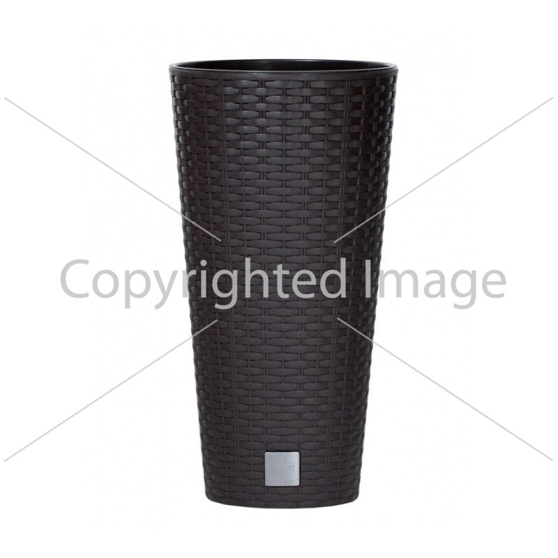 Горщик для квітів Rato Tubus з вкладом - виготовлений з якісного пластику, стійкого до впливу сонячних променів і вологи. Він легкий і стійкий, має модний дизайн та забарвлення у спокійних тонах. Фактура ротанга надає горщику вигляду натурального виробу, приносить атмосферу тепла та затишку. Він підійде для декорування тераси, балкону, кафе чи квартири. Внутрішній внесок зробить посадку рослини та догляд за нею легше та зручніше.
