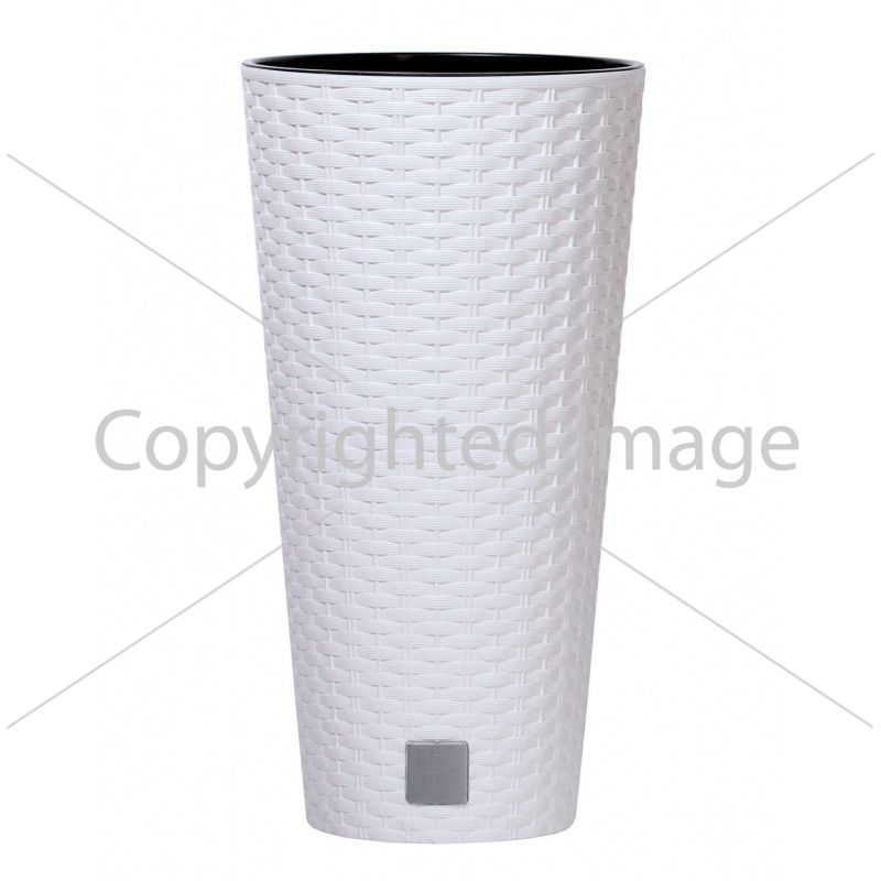 Горщик для квітів Rato Tubus з вкладом - виготовлений з якісного пластику, стійкого до впливу сонячних променів і вологи. Він легкий і стійкий, має модний дизайн та забарвлення у спокійних тонах. Фактура ротанга надає горщику вигляду натурального виробу, приносить атмосферу тепла та затишку. Він підійде для декорування тераси, балкону, кафе чи квартири. Внутрішній внесок зробить посадку рослини та догляд за нею легше та зручніше.