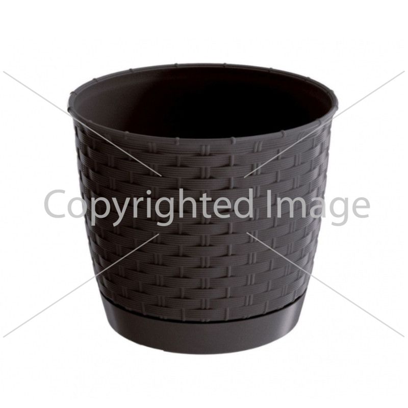 Квітковий горщик Ratolla круглий - виготовлений з якісного пластику, стійкого до дії сонячних променів та вологи. Він легкий і стійкий, має модний дизайн та забарвлення у спокійних тонах. Фактура ротанга надає горщику вигляду натурального виробу, приносить атмосферу тепла та затишку. Він підійде для декорування тераси, балкону, кафе чи квартири.